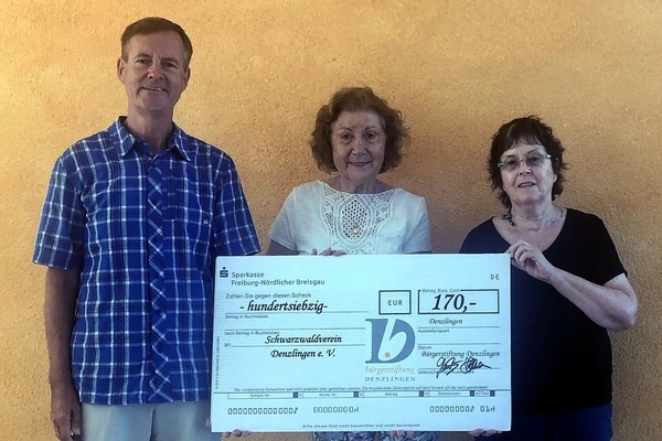 Scheck der Bürgerstiftung für den Schwarzwaldverein Denzlingen
